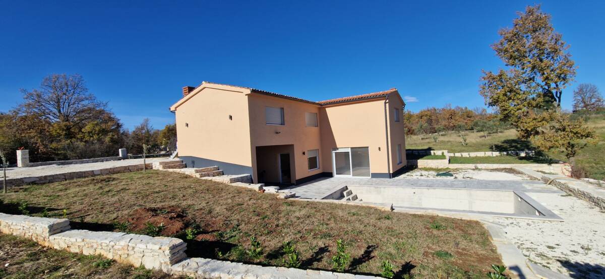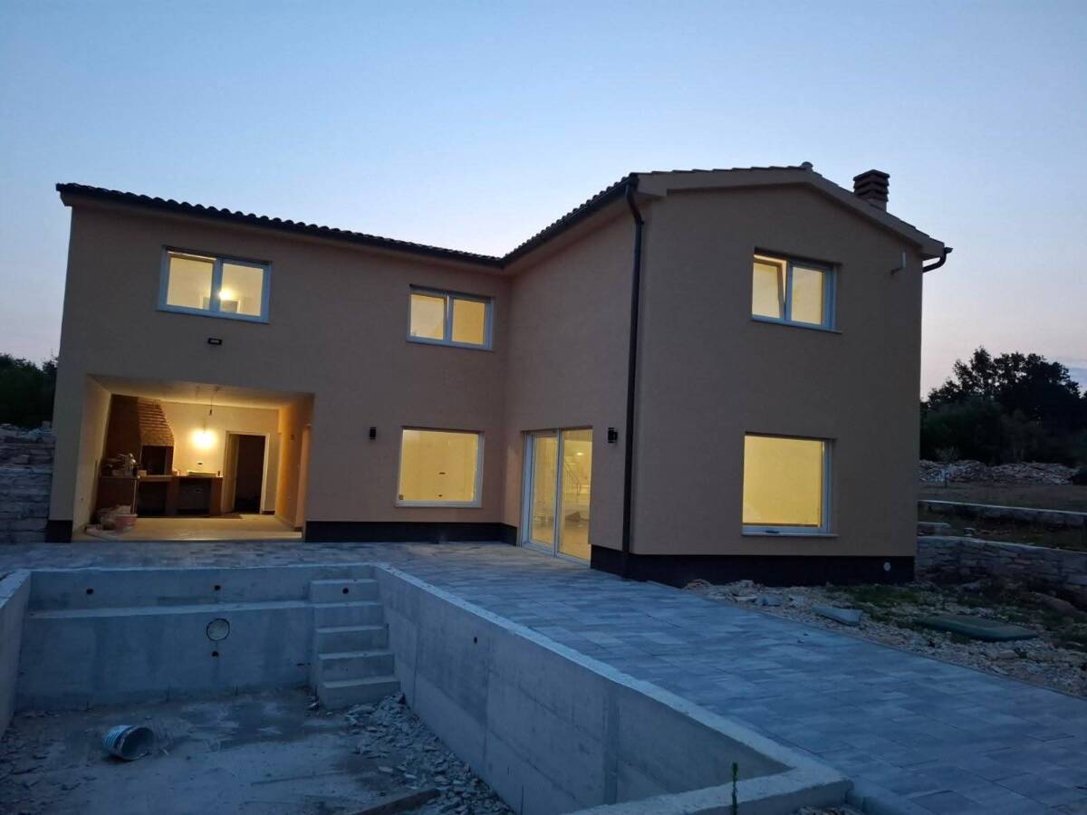 Prodaje se prekrasna kuća za odmor izgrađena 2022 godine, neto površine 190 m2, s bazenom dimenzija 8×4 i prostranom okućnicom, smještena u mirnom naselju Boškari nadaleko od općine Svetvinčenat i grada Vodnjana. Kuća je opremljena PVC stolarijom te podnim grijanjem kroz cijelu svoju površinu.