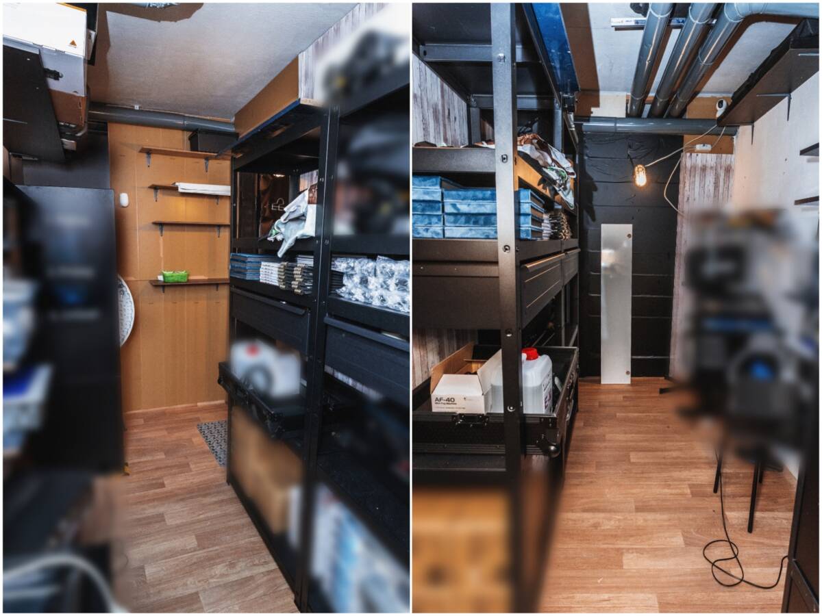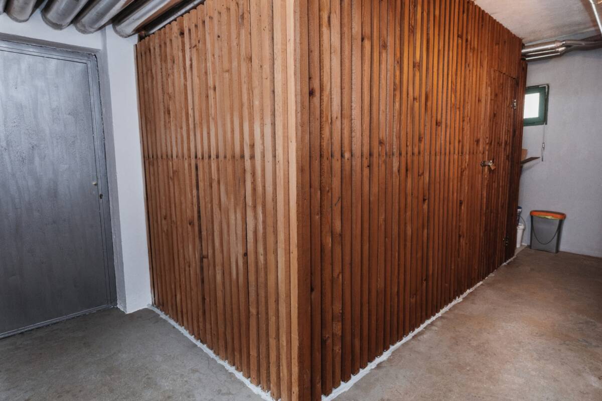 Spremište se nalazi odmah ispod stana sobe 1 te je čisto i uredno. Linoleum na podu, zidovi obloženi drvenim pločama i dekorativnim naljepnicama kao tapete. Mnogo skladišnog prostora. U zgradi je i zajednički prostor za bicikle koji se zaključava.